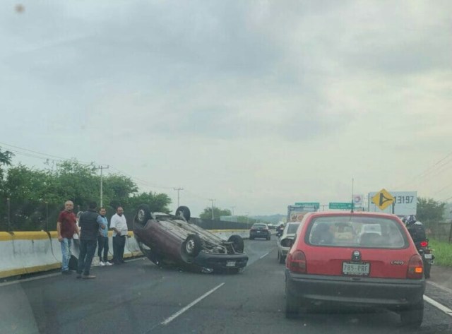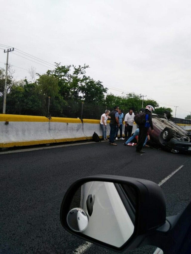 ado heridas al volcarse el automóvil Chevrolet Chevy en que viajaban por la autopista Acapulco-México a la altura de la Universidad del Valle de México.