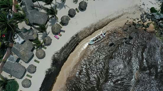 Una gran ola de sargazo llegó el 15 del junio a las playas de Tulum, en el centro de Quintana Roo.Desde las playas de este destino turístico se observó la presencia del sargazo, que dejó una mancha de color amarillo en medio del agua.A pesar de las algas, en la playa aún había bañistas.