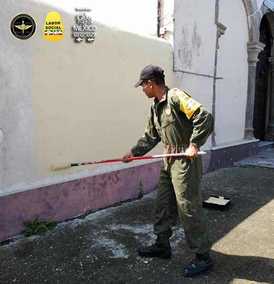 Elementos de la 23/a. Zona Militar realizaron actividades de #LaborSocial en la comunidad del Rosario, municipio de San Luis Teolocholco, #Tlaxcala, llevando a cabo trabajos de limpieza y pintura.