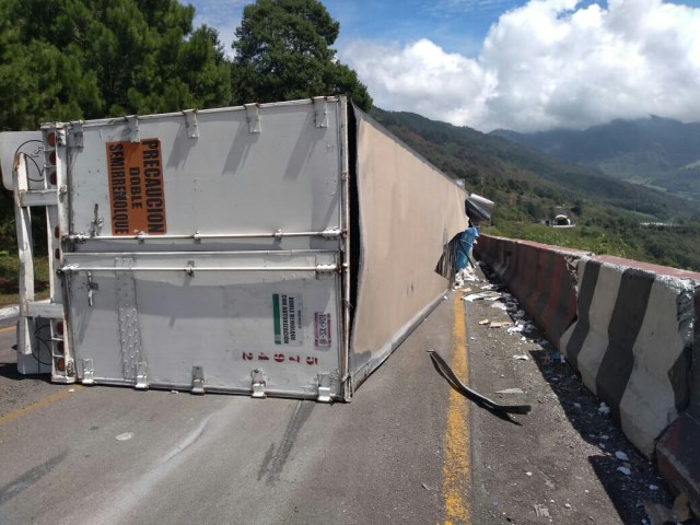 Aut. Acatzingo-Cd. Mendoza, km 235, cumbres de Maltrata, incidente, cierre de circul. en carril de Baja en direcc. a Cd. Mendoza, extreme precauciones