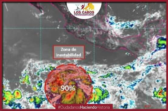 La zona de inestabilidad presenta ahora 90 % de probabilidad para desarrollo ciclónico dicha zona se asocia con la onda tropical No. 8 y se localiza al sur de las costas de Michoacán y Guerrero, sobre los cuadrantes: