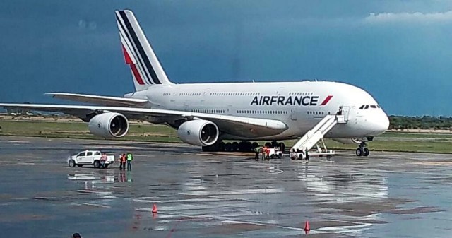 ✈ #FotoNota ⏰✈️ El Aeropuerto de Querétaro recibió el vuelo A380 de @airfrance desde París, debido a las condiciones climatológicas en Ciudad de México.