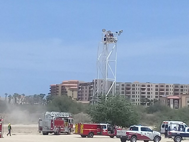 Cabo San Lucas (Baja California Sur).- Testigos dieron aviso a los número de emergencia a las dos de la tarde de hoy, que una mujer había subido a una de las torres de iluminación de 20 metros de altura del campo de fútbol Yenekamú, donde estaba gritando que deseaba acabar con su vida.De inmediato acudieron al sitio elementos paramédicos de bomberos, policía municipal y de protección civil, quienes iniciaron una labor de convencimiento para que la mujer desistiera de sus intenciones a partir de las 2 de la tarde.Un elemento de bomberos logró escalar hasta el lugar, donde comenzó a dialogar con la dama que en forma pacífica, media hora después, dijo que no se arrojaría, por lo que estaba de acuerdo en bajar.De esa forma se logró salvar la vida de esta damita, que fue sometida a revisión médica y luego trasladada al hospital general, donde recibirá ayuda sicológica.