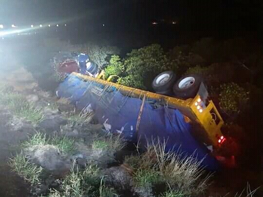 Accidente tipo salida de camino y volcadura en las inmediaciones de la playa el tesoro. No hay lesionados.