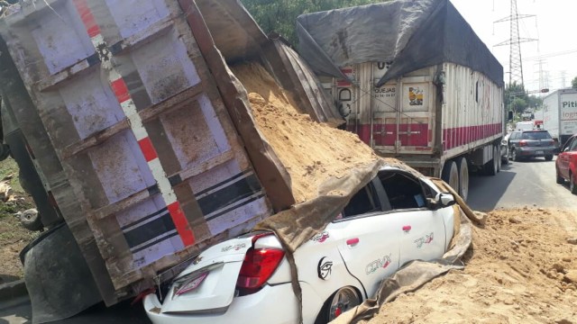 Vulcanos traspalan toneladas de tepetate para luego enderezar torton que volcó y liberar taxi que APLASTO! Taxista está bien al final cual que sus pasajeros (mamá y 2 niños)