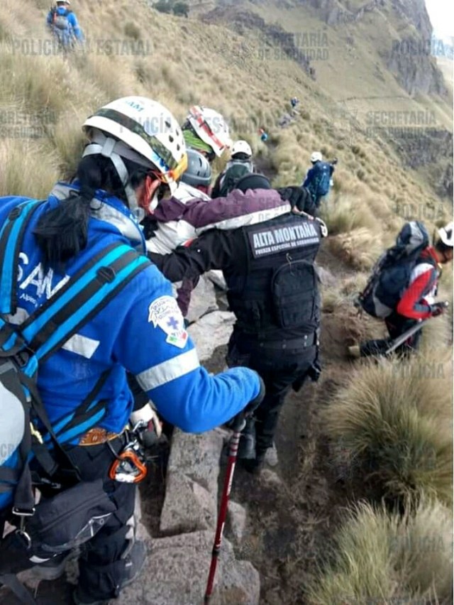 RESCATE COORDINADO DE ALTA MONTAÑA, SALVA LA VIDA A MUJER QUE SUFRIÓ CAÍDA EN EL VOLCÁN POPOCATÉPETL