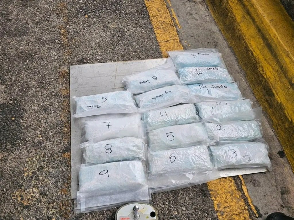 A. 15 bolsas de plástico selladas herméticamente con un pesos total de 8.920 kilogramos, contendiendo en su interior aproximadamente 81,833 comprimidos de droga conocida como fentanilo. B. 1 civil detenido. C. 1 vehículo.