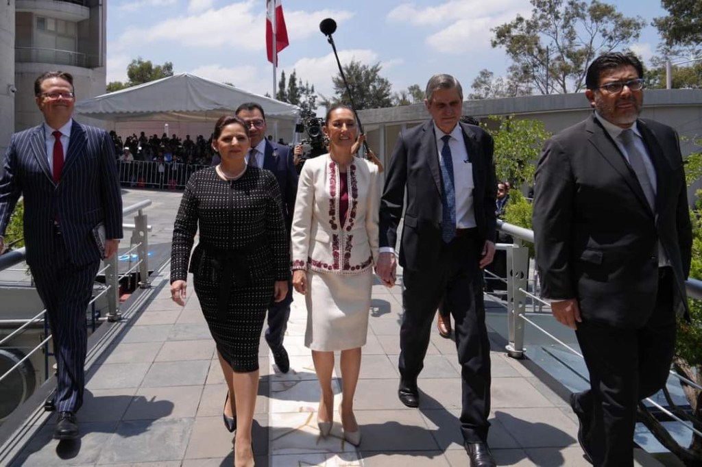 “La Transformación hace historia en usted, Doctora Claudia Sheinbaum Pardo, primera mujer electa constitucional y legítimamente para gobernar a las y los mexicanos; en usted se refleja el avance sustantivo de las mujeres mexicanas y en su Presidencia se encarnan las aspiraciones de libertad y progreso del Estado de Derecho y libertad plena”, expresó.